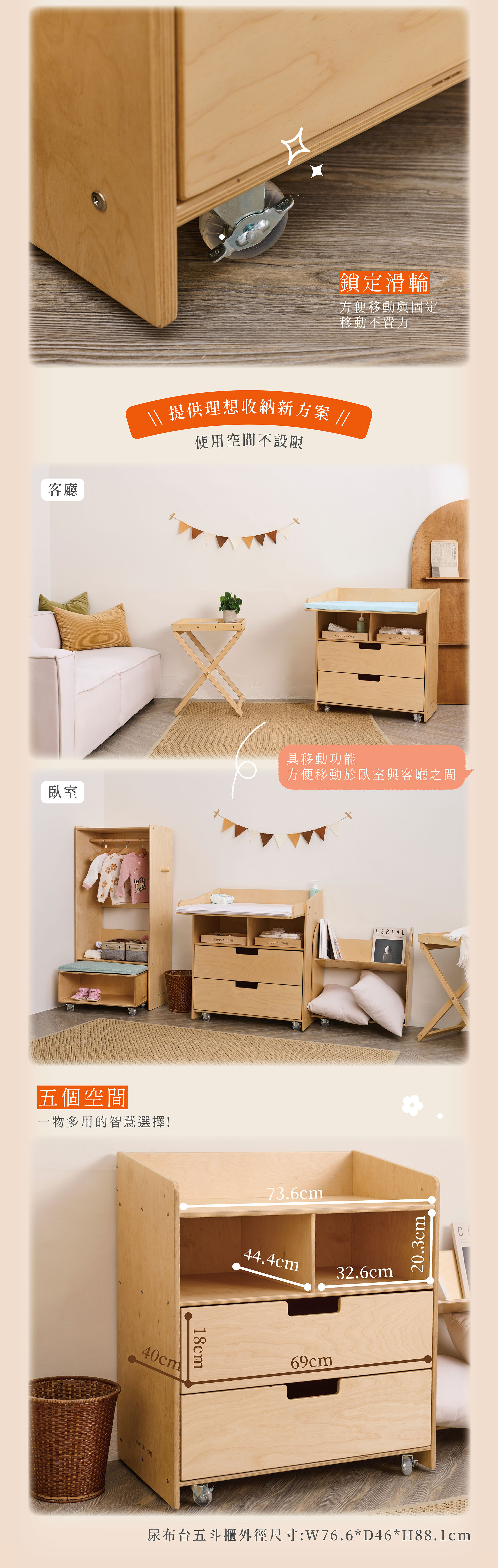 - 共有5格收納存放空間