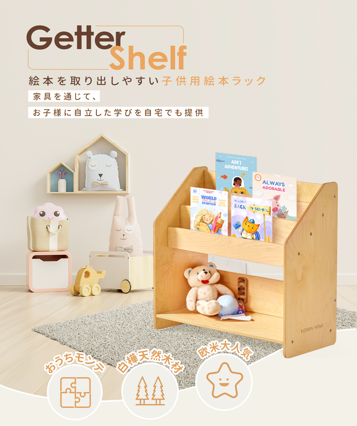 因此設計「Getter-shelf 子供用繪本收納架」。
