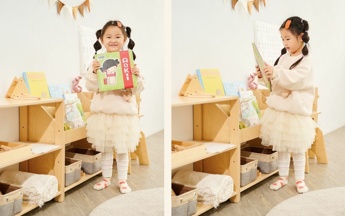 封面朝外的設計,讓孩子可以自由選擇自己喜歡的繪本。