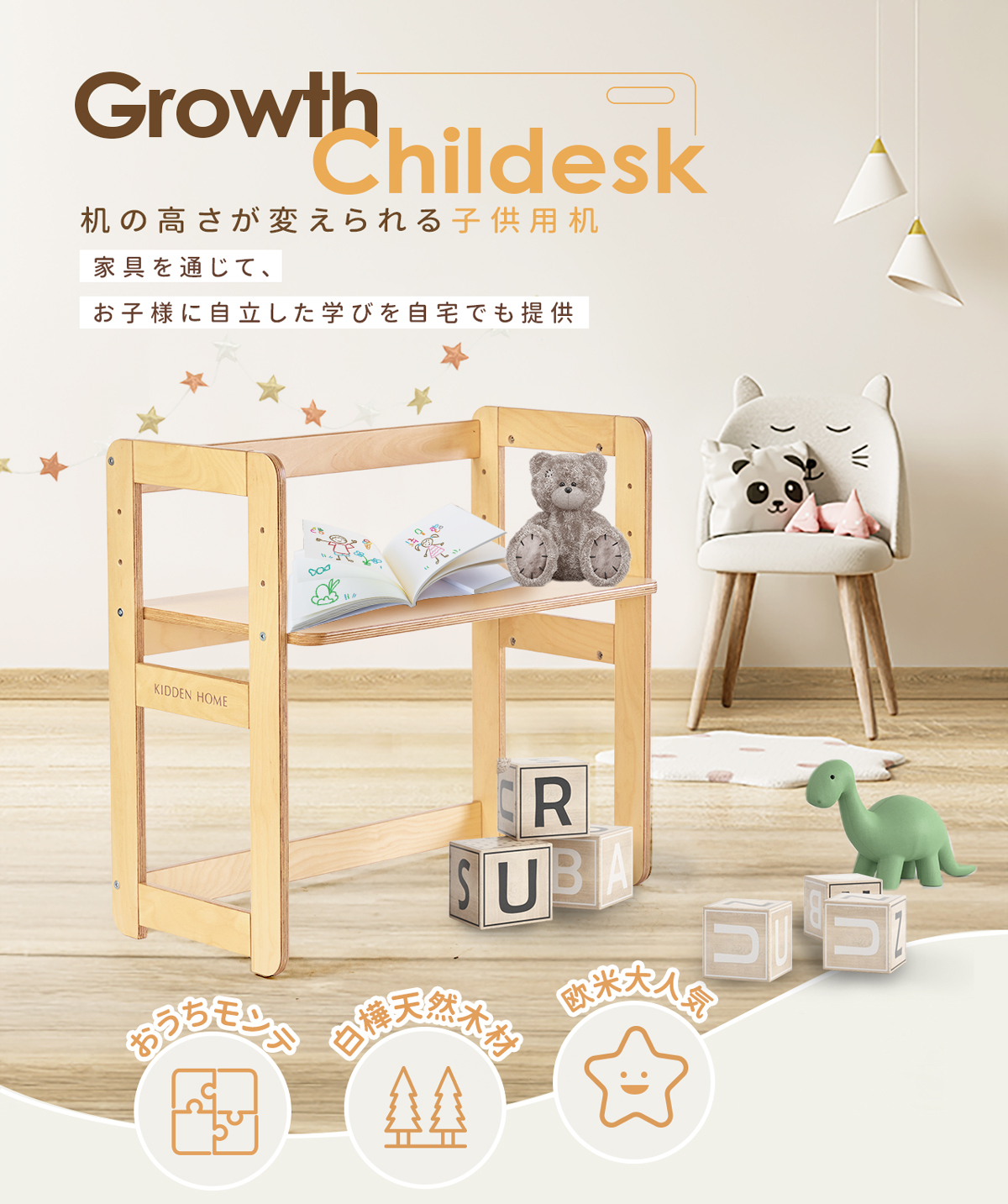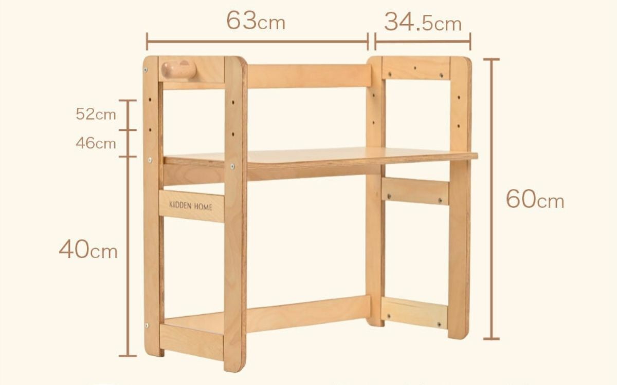 可以根據孩子的成長階段(1~3歲、4~5歲、6~8歲)來調整桌子的高度。